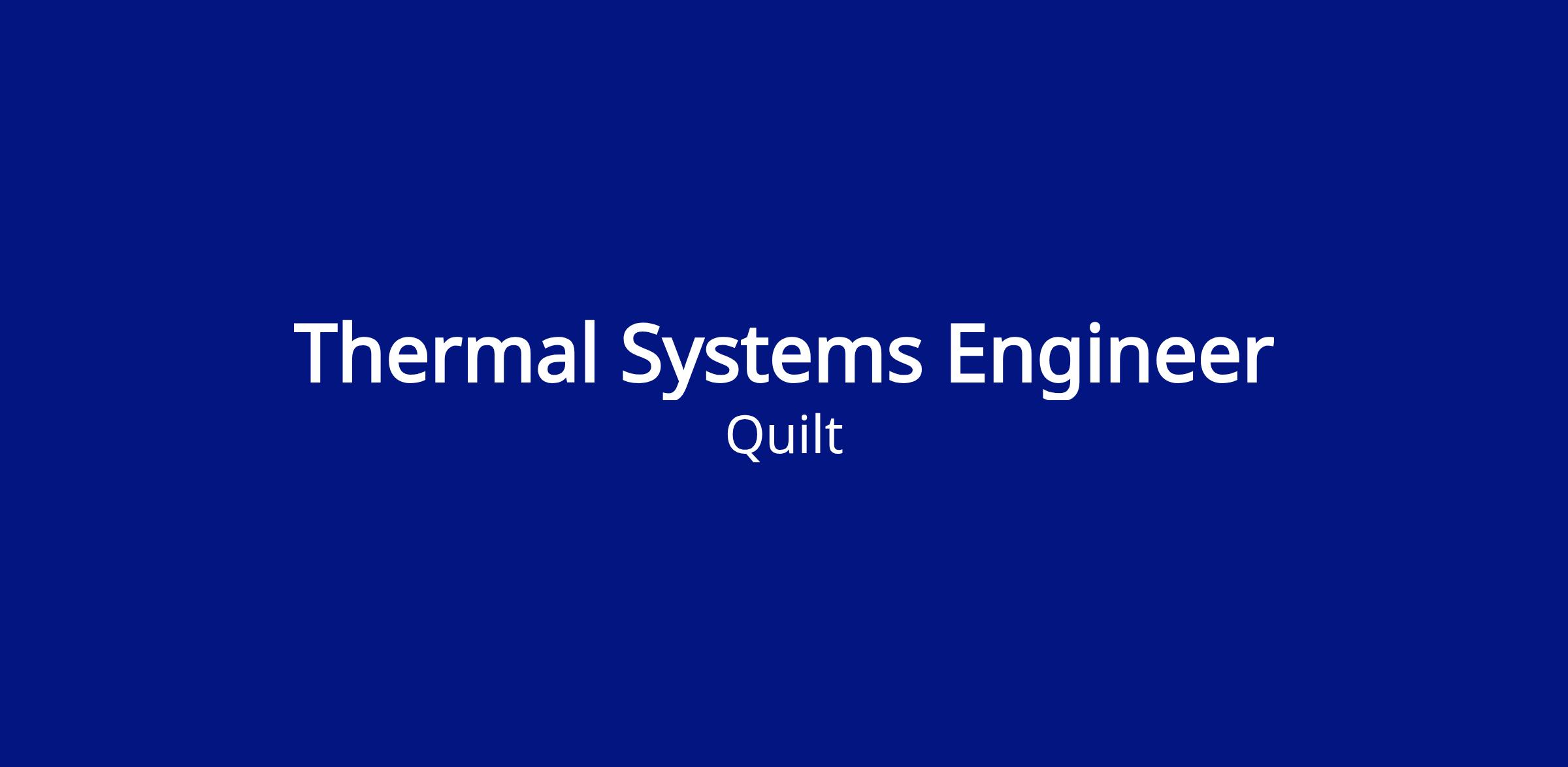 Quilt is hiring a Thermal Systems Engineer to optimize deployed systems and support development of our next generation systems. This is an excellent opportunity for an early-career engineer to dive deep into real-world applications of a thermal system, gain testing, analysis and system design skills while contributing to products that combat climate change.