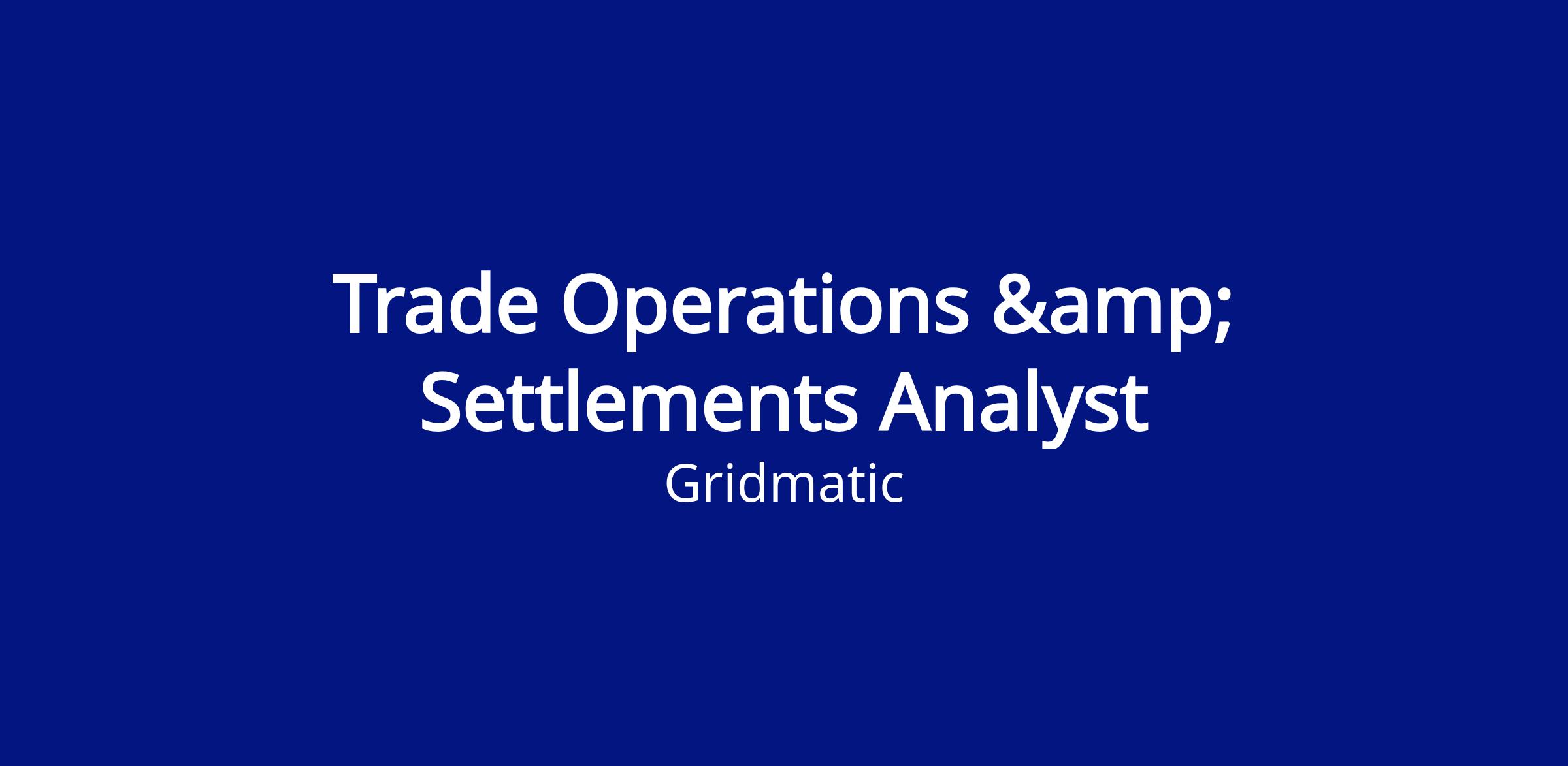 We are seeking a Trade Operations & Settlements Analyst to join our Houston or Bay Area team. You will set up tracking, reporting, and clean accounting data for the growing trading business, building the infrastructure that allows our bilateral and physical power business to scale.