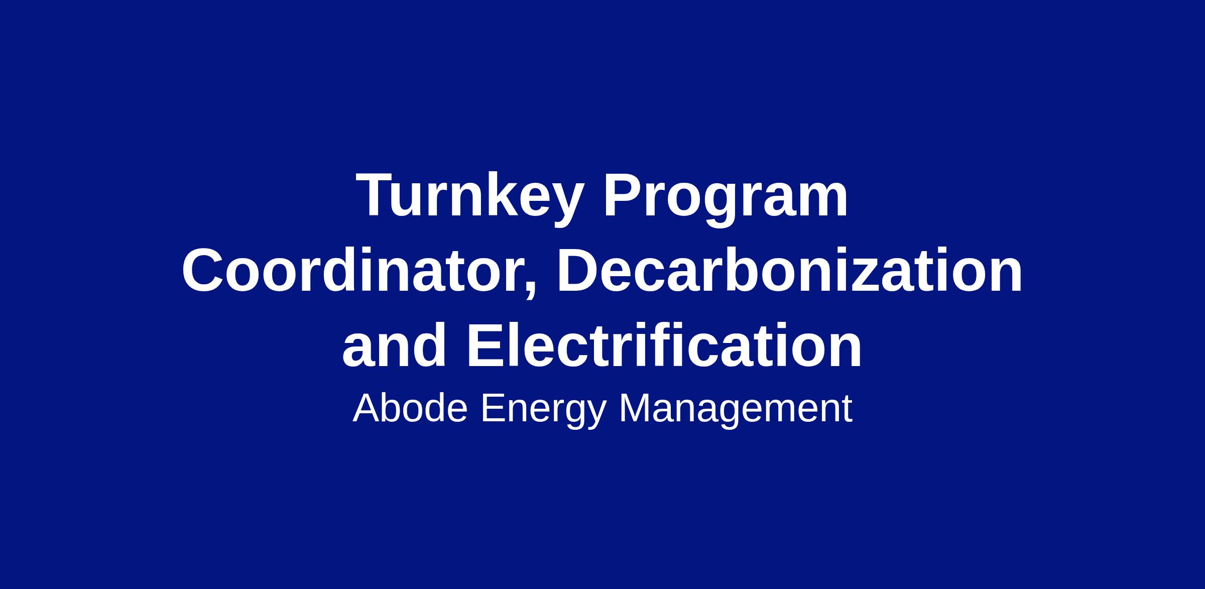 Turnkey Program Coordinator, Decarbonization and Electrification