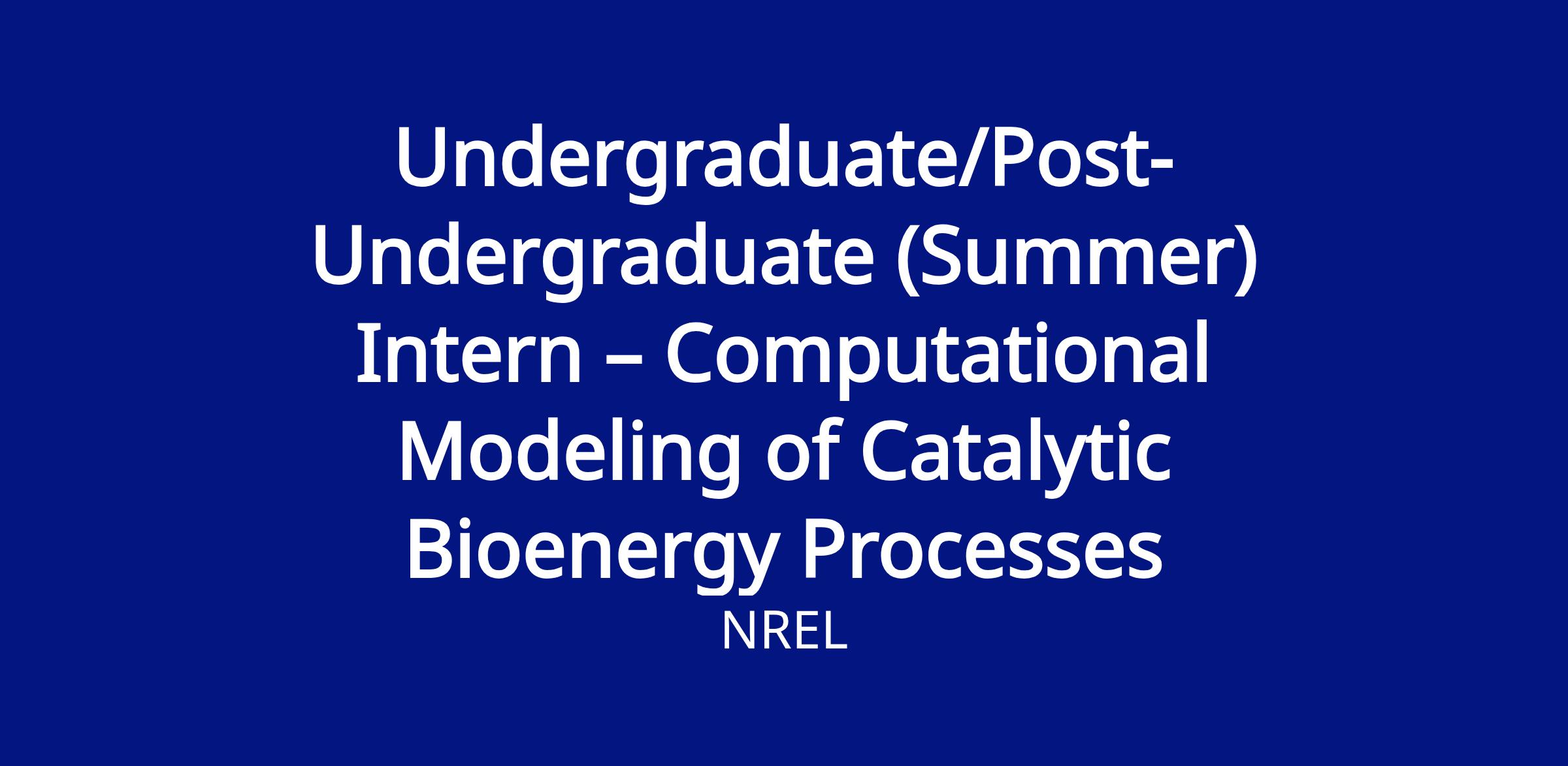 Undergraduate/Post-Undergraduate (Summer) Intern – Computational Modeling of Catalytic Bioenergy Processes