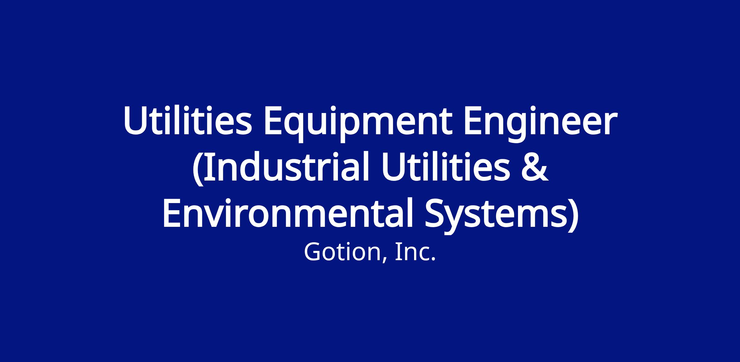 Title: Utilities Equipment Engineer (Industrial Utilities & Environmental Systems)