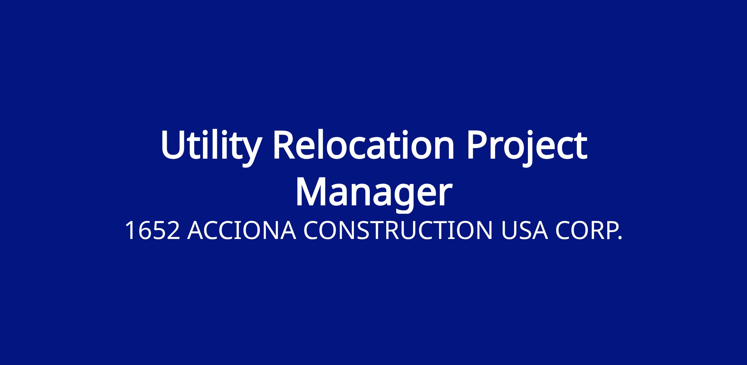 Minimum 10+ years of experience in infrastructure projects, with at least 5 years in utility relocation management.