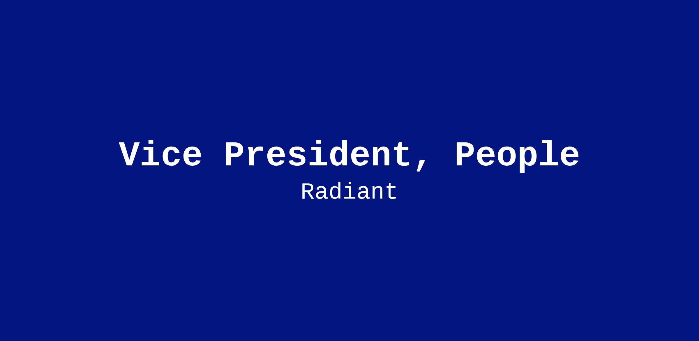 Radiant is scaling rapidly. We're looking for a Vice President of People to help preserve what makes Radiant special while building the people infrastructure to support the next phase of growth.