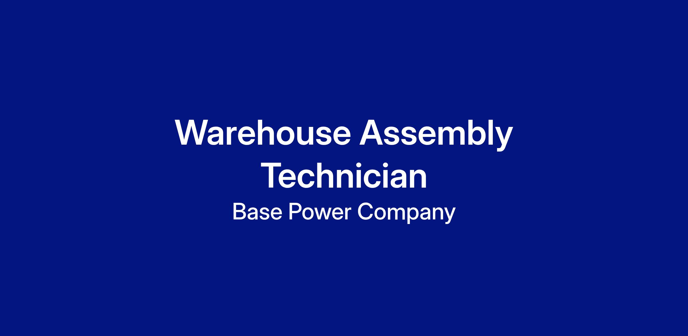 As an Assembly Technician, you'll be at the heart of assembling and producing our home battery systems. If you're driven by a strong work ethic, thrive on reliability, and love collaborating in a safety-first, innovative environment, join us in shaping America's energy future! This position involves a variety of tasks that support the efficient operation of our warehouse, including receiving and organizing materials, kitting job kits, operating equipment such as forklifts and electric pallet jacks, and performing physical labor.