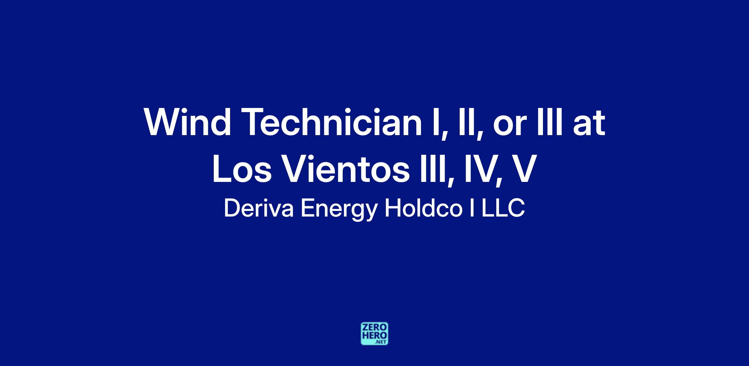 Deriva Energy, a portfolio company of Brookfield Renewable U.S., who is a nationwide leader in sustainable energy provides wind, solar, resilient backup power, and managed energy services to over 1,000 projects across the U.S., with a total electric capacity of more than 5,100 megawatts of nonregulated renewable energy is seeking a Wind Technician, to be based in their Los Vientos III, IV, V Wind location.