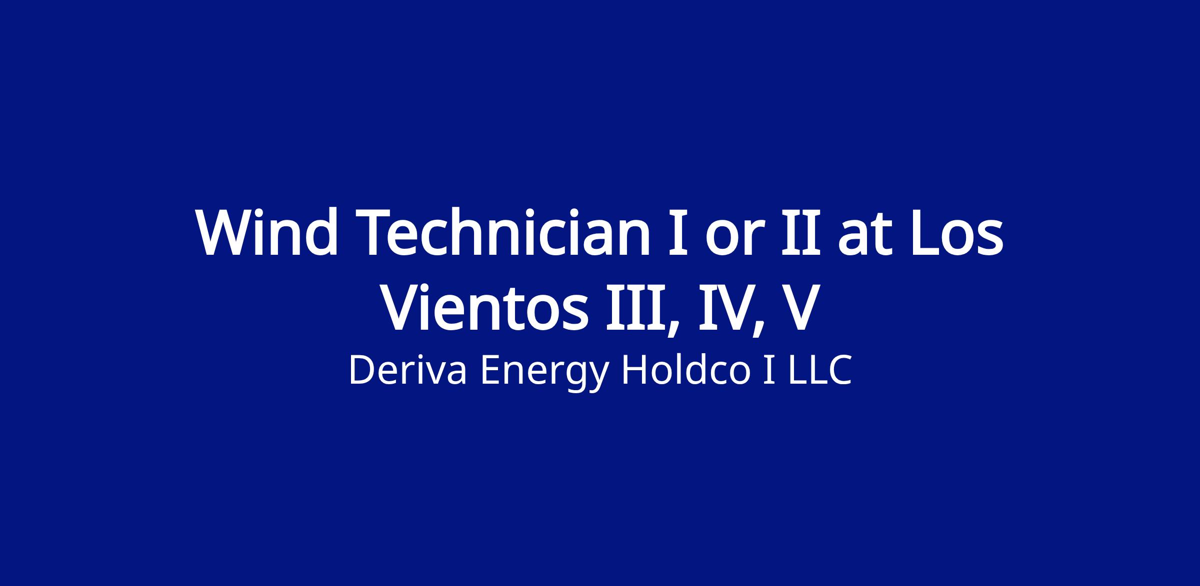 Deriva Energy, a portfolio company of Brookfield Renewable U.S., who is a nationwide leader in sustainable energy provides wind, solar, resilient backup power, and managed energy services to over 1,000 projects across the U.S., with a total electric capacity of more than 5,100 megawatts of nonregulated renewable energy is seeking a Wind Technician, to be based in their Los Vientos III, IV, V Wind location.