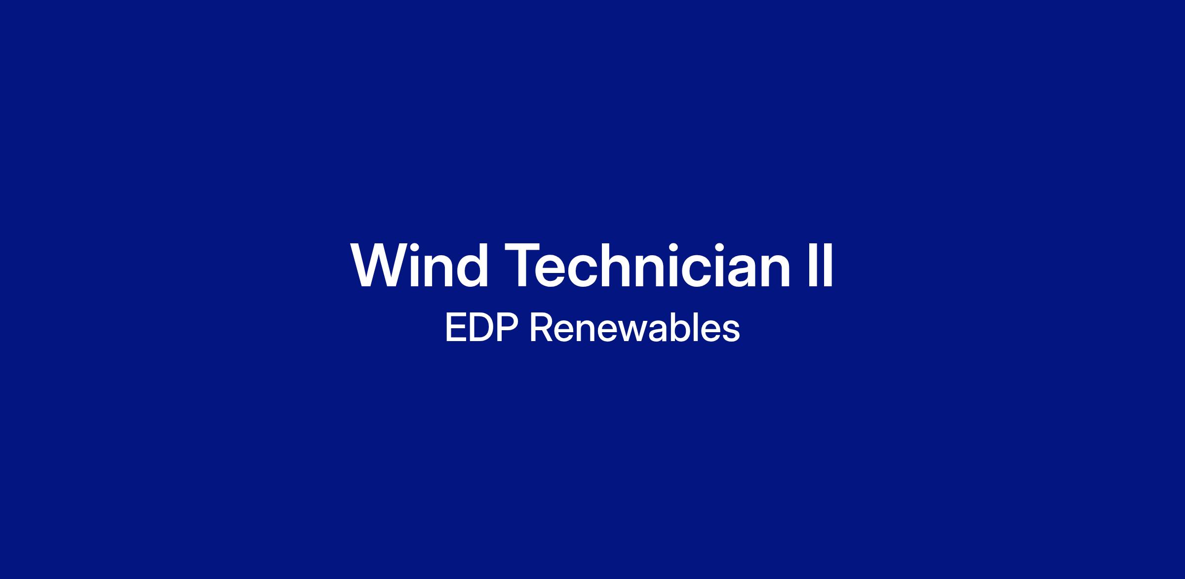 Intermediate level position, the Wind Technician II is an integral member of the Wind farm with the responsibility of on-site operations, maintenance, repairs, and replacement of equipment at one of EDPR NA’s operating wind energy generation sites. Tasks include but are not limited to completing Lock-Out-Tag-Out (LOTO), Tail Board, and documentation that is necessary to support wind turbine maintenance safely. This team member will also conduct inspections of equipment, tools, and facilities for compliance with EDPR policies, governmental safety guidelines, and environmental regulations. The ideal candidate is experienced in renewable energy or related industry and is prepared to further their career as part of a global leader in the renewable energy sector.