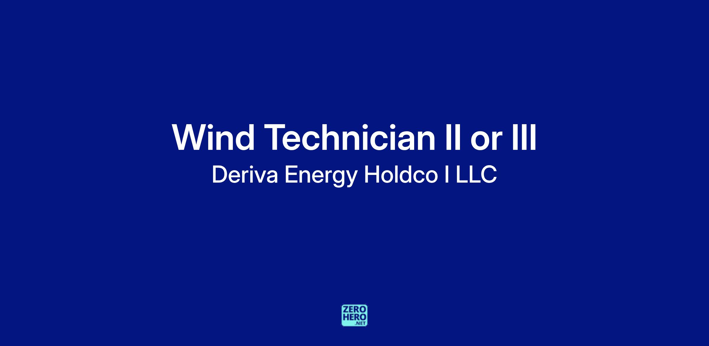Deriva Energy, a portfolio company of Brookfield Renewable U.S., who is a nationwide leader in sustainable energy provides wind, solar, resilient backup power, and managed energy services to over 1,000 projects across the U.S., with a total electric capacity of more than 5,100 megawatts of nonregulated renewable energy is seeking a Wind Technician II or III, to be based in their Ironwood Wind Farm location.