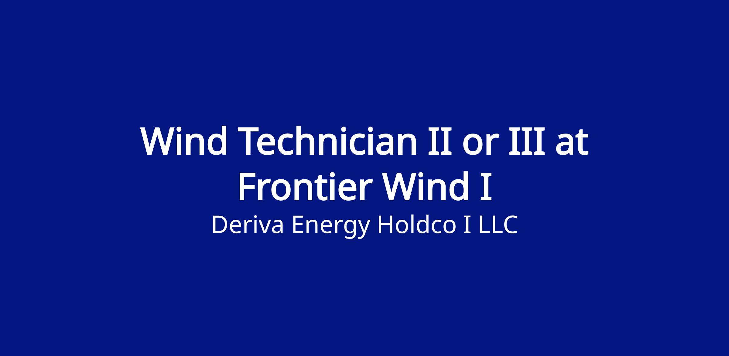Wind Technician II or III at Frontier Wind I