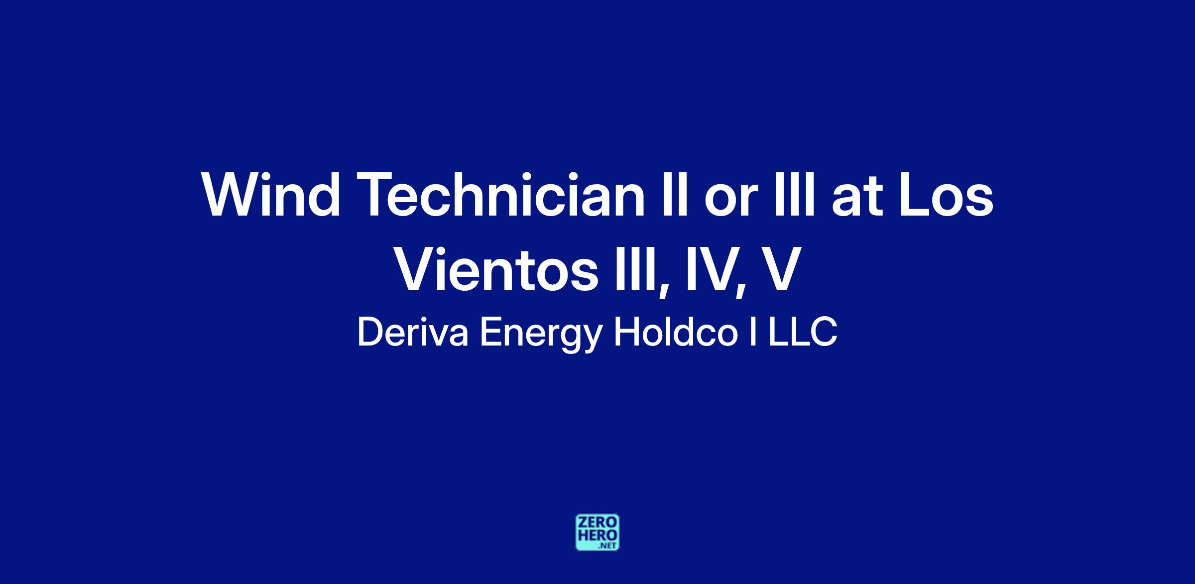 Deriva Energy, a portfolio company of Brookfield Renewable U.S., who is a nationwide leader in sustainable energy provides wind, solar, resilient backup power, and managed energy services to over 1,000 projects across the U.S., with a total electric capacity of more than 5,100 megawatts of nonregulated renewable energy is seeking a Wind Technician, to be based in their Los Vientos III, IV, V Wind location.