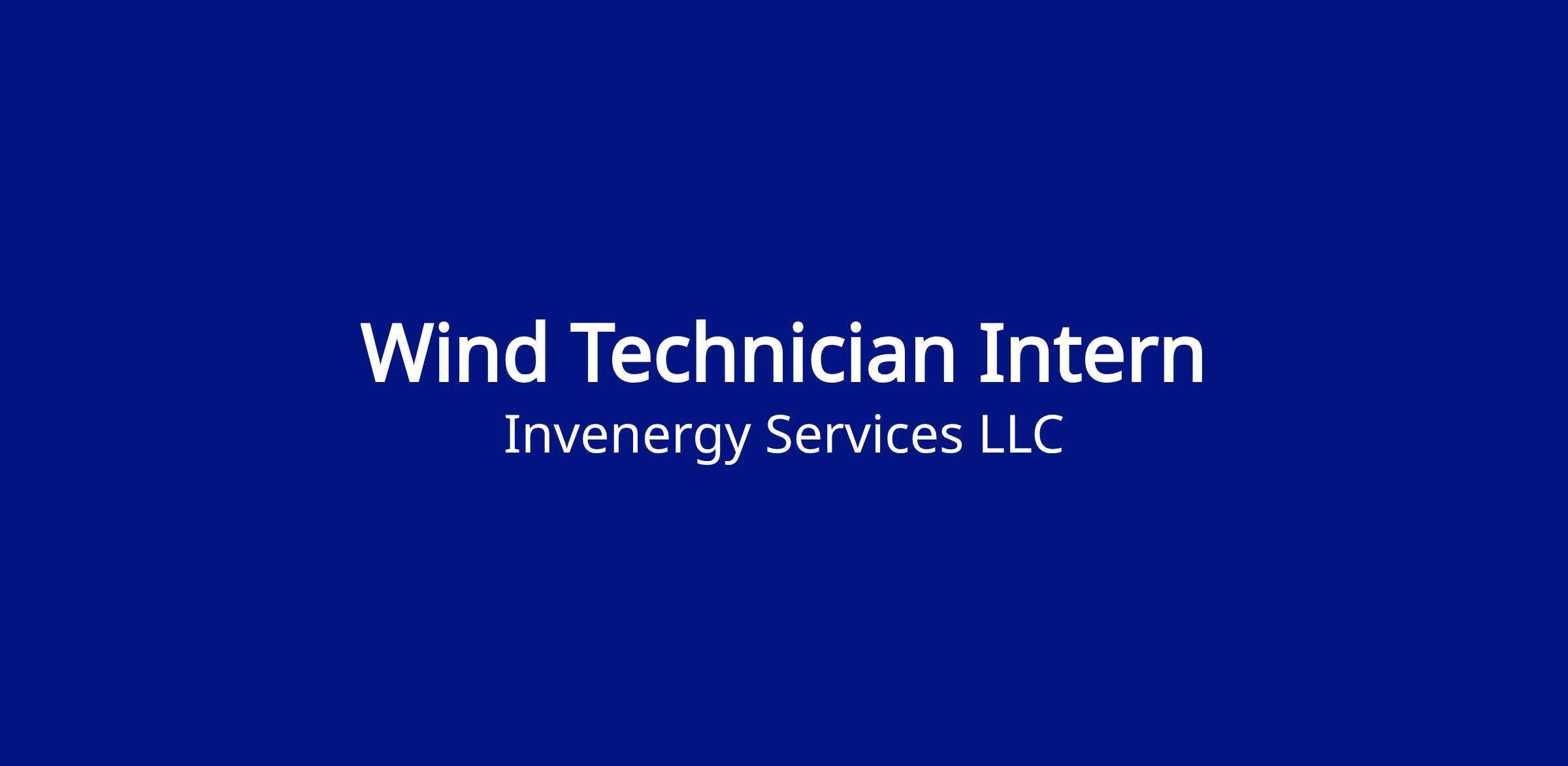 Invenergy Wind Interns will work out of a designated energy center and will observe work of Invenergy technicians and learn how to perform basic turbine operation and maintenance tasks. As an intern, you will help to ensure the safe, compliant, and profitable operations of existing Invenergy wind fleets. This is a hands-on internship that will equip you with the necessary skills to begin an exciting career in the wind industry!